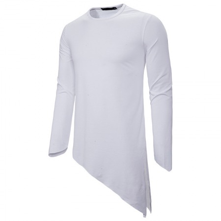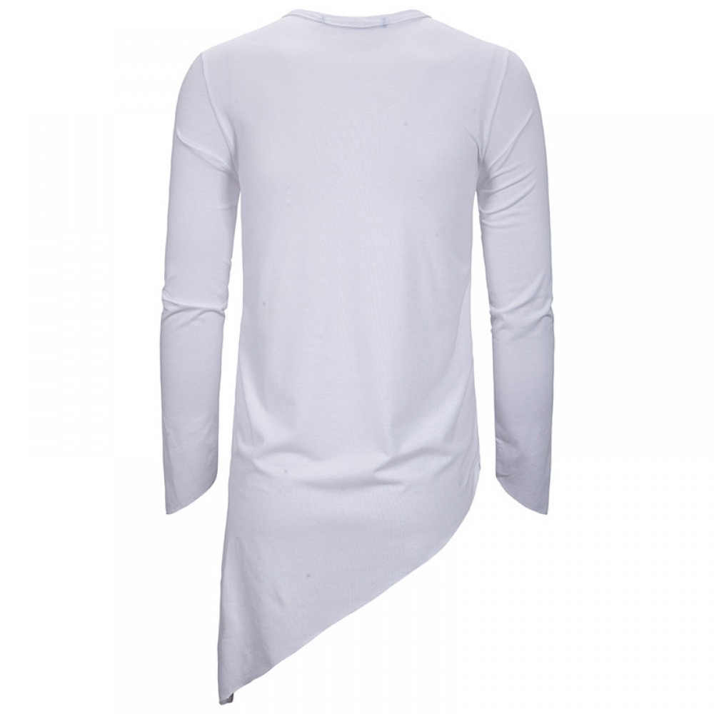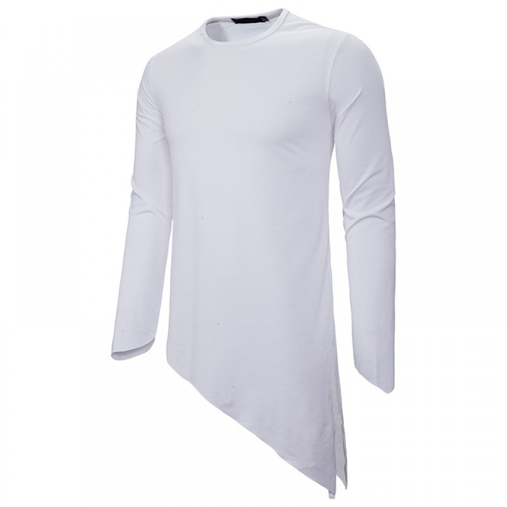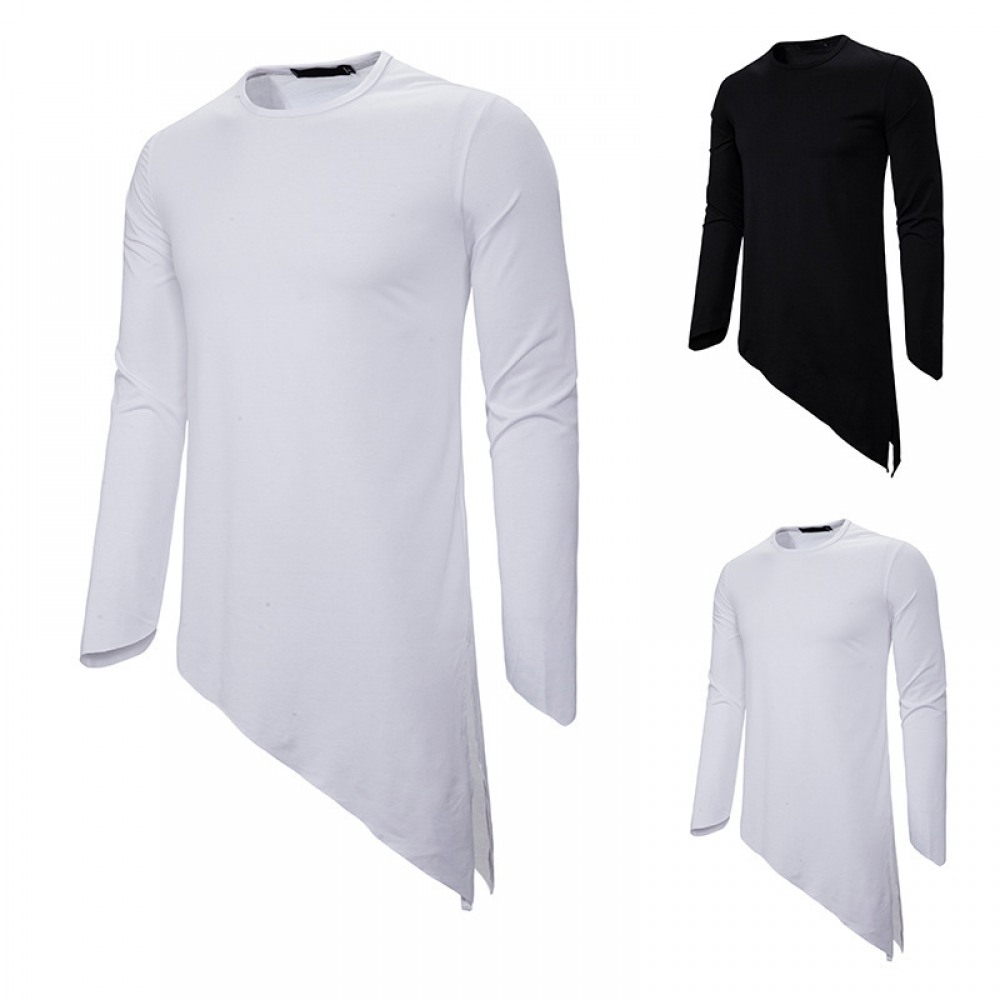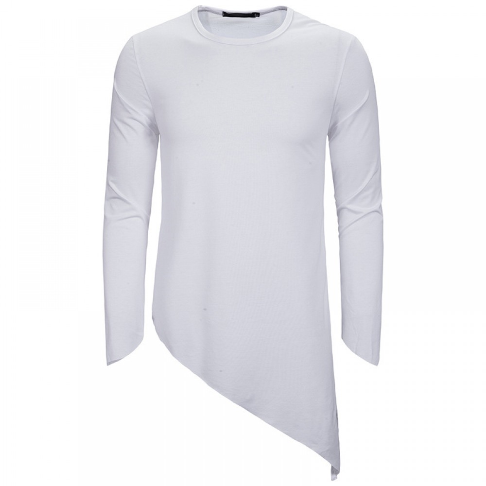 Men's Long-Sleeved T-Shirt Irregular Hem Pointed Long-Sleeved Casual T-Shirts