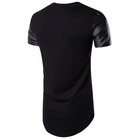Men's Round Neck Short-Sleeved High Street Arc Hem Solid Color Leather T-Shirt