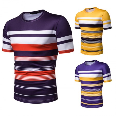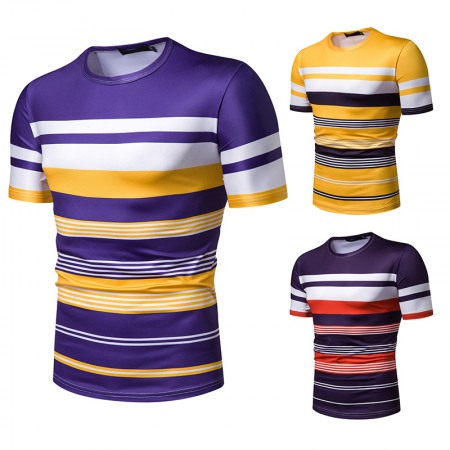 New Summer Men's Short-Sleeved T-Shirt Mens Contrast Striped Slim-Fit Casual T-Shirt