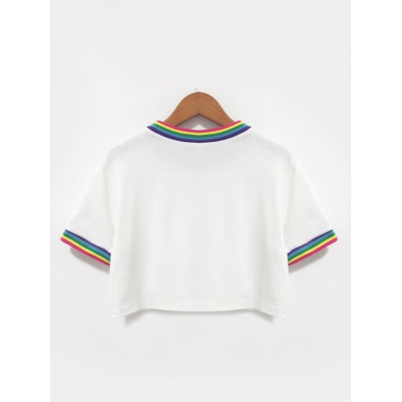 Rainbow Stitching Loose Cropped T-Shirt
