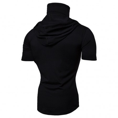 Summer Personality Stretch Fitness Men's Suit Hooded Short-Sleeved T-Shirt Face Mask